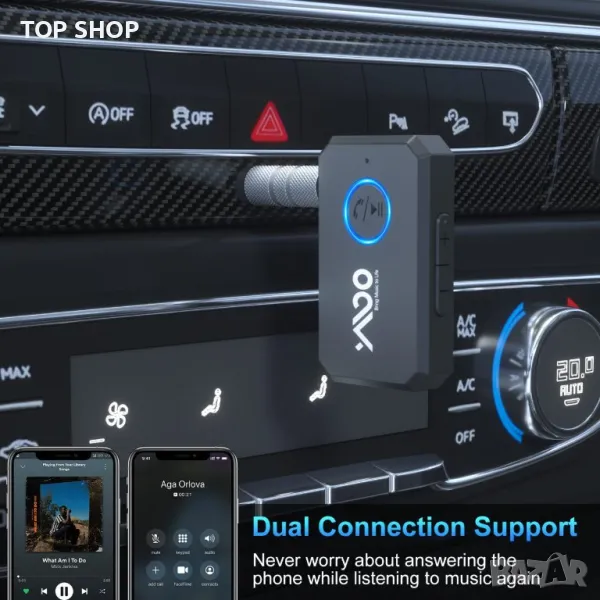 - YMOO Bluetooth адаптер за кола може да се сдвоява с 2 устройства едновременно. Можете да превключвате напред и назад между двете устройства. А Bluetooth приемникът може бързо и автоматично да се свърже с устройствата, които сте свързвали преди. Има много стабилна връзка, не се тресе, докато колата се движи, а музиката е 100% свободна от бъркотия.