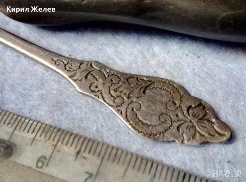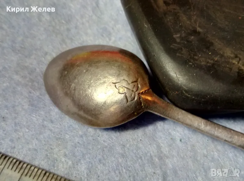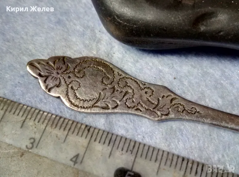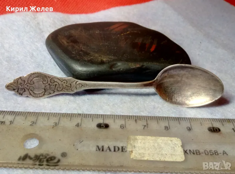 СТАРА РЪЧНО РЕТРО ОРНАМЕНТИРАНА ДЕБЕЛО ПОСРЕБРЕНА 90 МИКРОНА МАРКОВА БРОНЗОВА ЛЪЖИЧКА За КАФЕ 41033