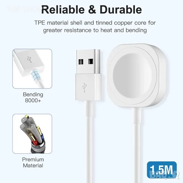 【1,5 м/5 фута перфектна дължина】 Благодарение на 1,5 м дължина на кабела за зареждане на Apple Watch ще можете да зареждате на всяко удобно за вас място, независимо дали сте у дома, в офиса или пътувате