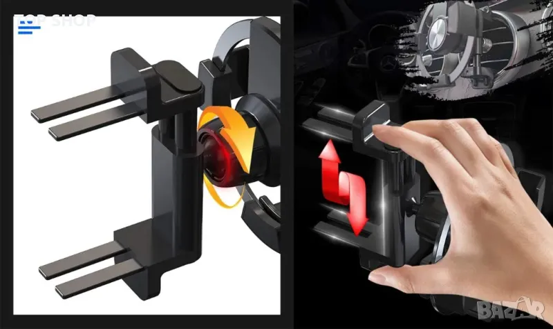 Конструкцията на механичната гравитационна връзка позволява скобата на рамото на държача за кола да бъде лесно заключена и освободена с една ръка, а държачът за телефон с вентилационен отвор за кола може сигурно да фиксира телефона ви, за да предотврати разклащане.