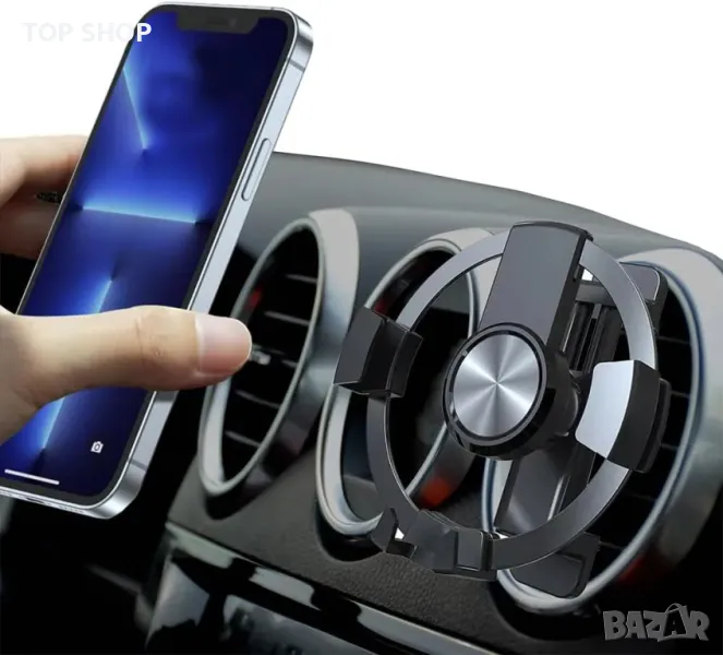Стойка за телефон за кола YIEDDE за кръгли вентилационни отвори, противоплъзгаща силиконова защита за iPhone, Samsung, Huawei - 360 градусов зрителен ъгъл