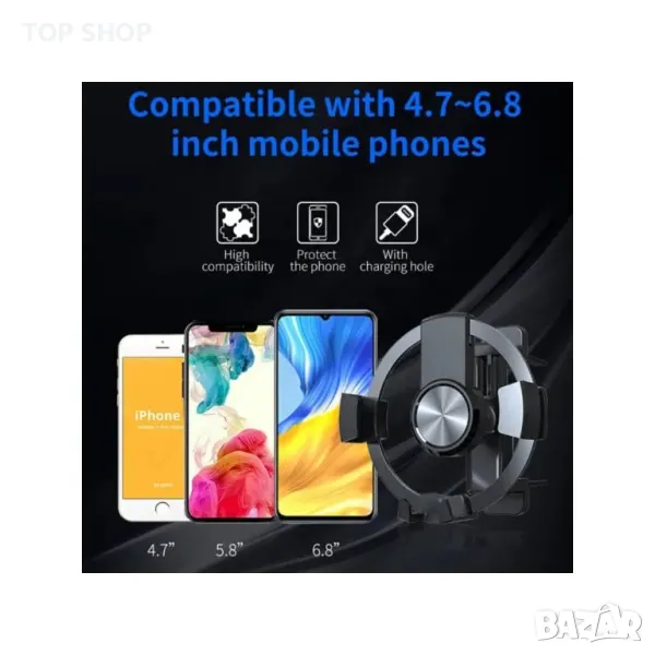 Тази стойка за телефон за кола е съвместима с всички телефони от 4" до 6,7"