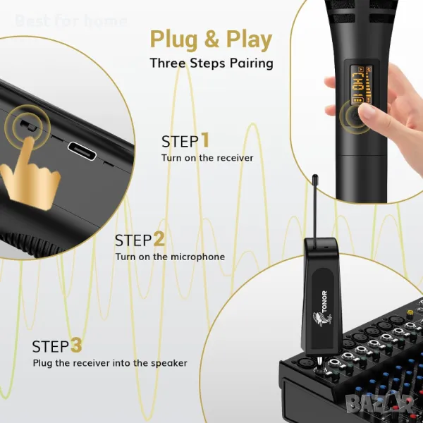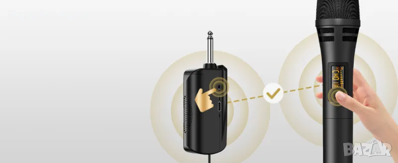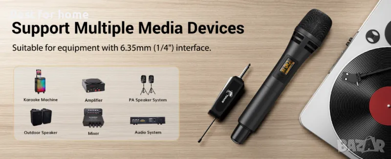 Plug and Play: Нашият приемник осигурява лесно свързване чрез 6,35 mm жак за микрофон, което го прави подходящ за използване с караоке машини, активирани високоговорители, усилватели, миксери и аудио интерфейси. Имайте предвид, че тази система не е съвместима с мобилни телефони, компютри или таблети.