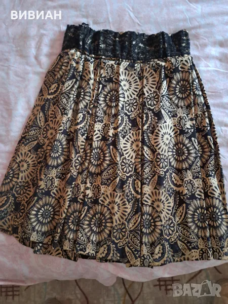 Сатенирана елегантна пола,нова на колана е с дантела, и има еластичност дължина 55 см,талия 35 см.Купена за 66 лв,продава се за 50 лв