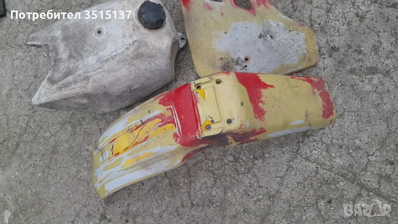 резервоар с капачка и кранче и страници , преден и заден калник цената е за всичко , червения резервоар се продава отделно
