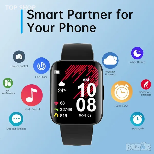 Фитнес часовник за проследяване на активността: Този смарт часовник има 22 вида спортни режими (ходене, бягане, колоездене, йога, прескачане, бадминтон, баскетбол, футбол и др.). Можете да записвате и проверявате данни за целодневни дейности като стъпки, разстояние и изгорени калории. Всички данни могат да се синхронизират с вашия телефон за анализ и да ви помогнат да създадете планирана рутина, за да постигнете вашите здравни цели.