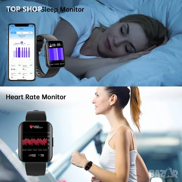 24/7 Монитор на сърдечния ритъм и Проследяване на съня: Смарт часовникът автоматично ще отчита сърдечния Ви ритъм от време на време. Той също така открива и проследява съня ви и автоматично анализира качеството ви на съня (дълбок сън, лек сън и време на будност). След като APP се свърже със смарт часовника, приложението ще предостави подробна диаграма на сърдечния ритъм и цялостен анализ на качеството на вашия сън, за да ви помогне да останете активни и здрави (Забележка: Данните от часовника не могат да се използват за медицински цели)