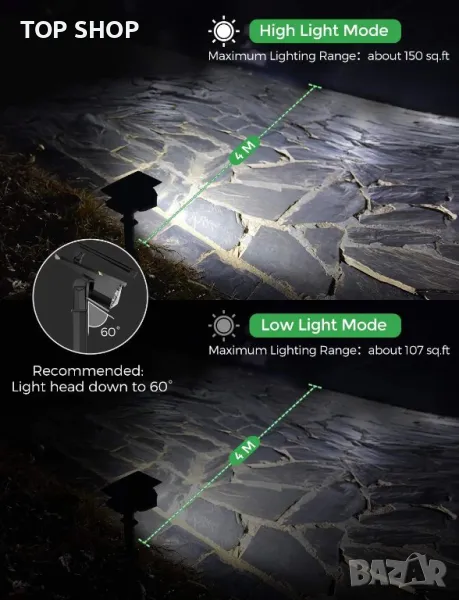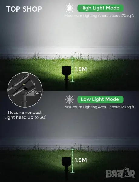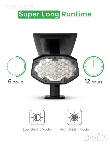 ИЗКЛЮЧИТЕЛНО ЯРКА - Уникална 30 LED SILVER FOCUS LIGHT HEAD не само увеличава яркостта, но и предотвратява навлизането на прах. дизайнът на прожекторите прави ОБХВАТ НА ОСВЕТЛЕНИЕ ДО 172 КВ. FT определено ще отговори на вашите нужди от осветление. Две яркости за избор: висока яркост непрекъснато продължава 6 часа и ниска яркост за 12 часа, просто регулирайте свободно според личните нужди.