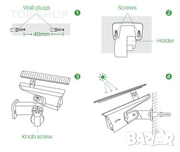 МНОГОКРАТНА УПОТРЕБА - 2 лесни опции за инсталиране: Забийте в земята с колове / Монтирайте на стената с включените винтове. Оптимално за вътрешен двор, веранда, пътека, тераса, басейн, двор, градина, гараж, алея, пътека и др.