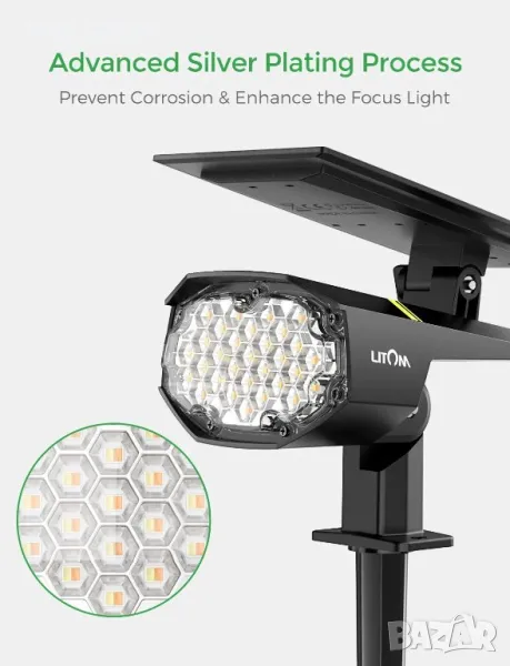 Соларният прожектор LITOM може да се използва широко за градина, пътека, морава, ограда, стена, двор, стълбище, вътрешен двор, гараж, басейн, входна врата, веранда, балкон, пътека, алея, къмпинг, риболов и др.