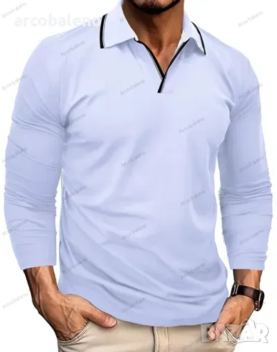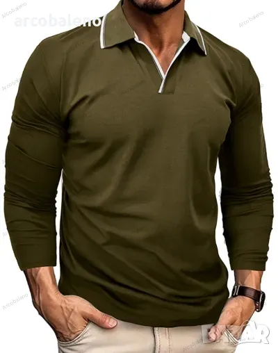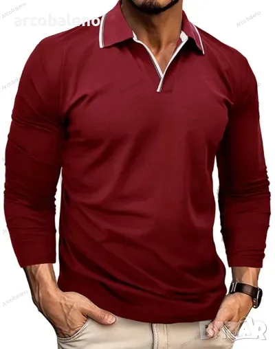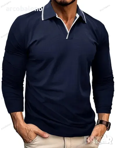 Нова мъжка тениска ПОЛО с V-образно деколте и ревер, 6цвята