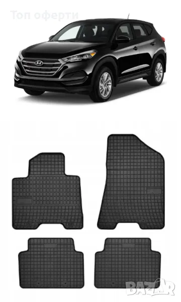 Висококачествени автомобилни гумени стелки на полската фирма Frogum в класически черен цвят. Стелките са подходящи за Hyundai Tucson 2015+ и предлагат перфектно пастване без допълнителни корекции.