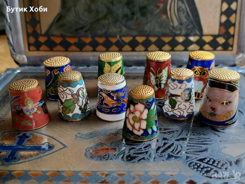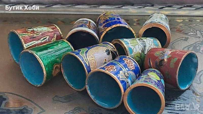 Малка колекция от напръстниците - Cloisone/ Клоазоне/ клетъчен емайл. 10 броя общо + 1 подарък.Размери - 2,5 - 2,8см.