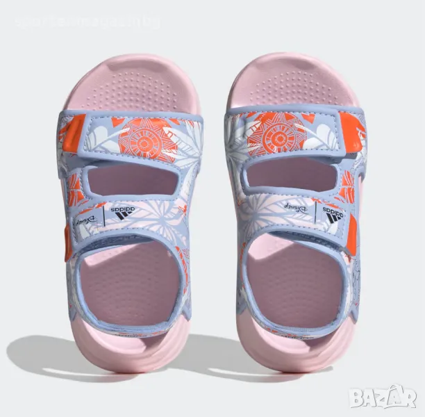 Сега малчуганите могат да следват стъпките на Моана от пясъка до плитчините. Тези детски сандали за вода Аdidas са закачливо украсени с Moana на Disney отстрани. Те имат горна част с бързосъхнеща основа и контурна подложка, която се оттича лесно. Закопчаващите се презрамки се регулират за плътно прилепване във и извън водата.