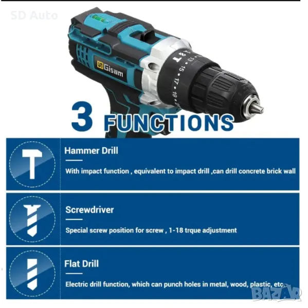 ***Електрическа бормашина / винтоверт GISAM с 2 батерии