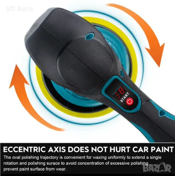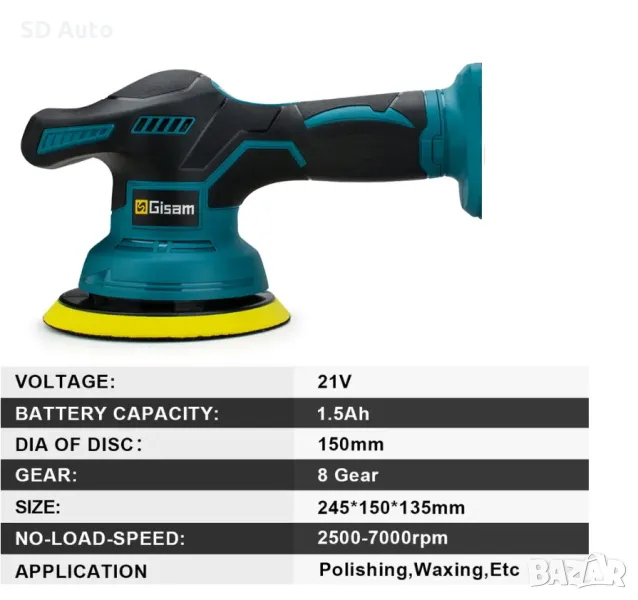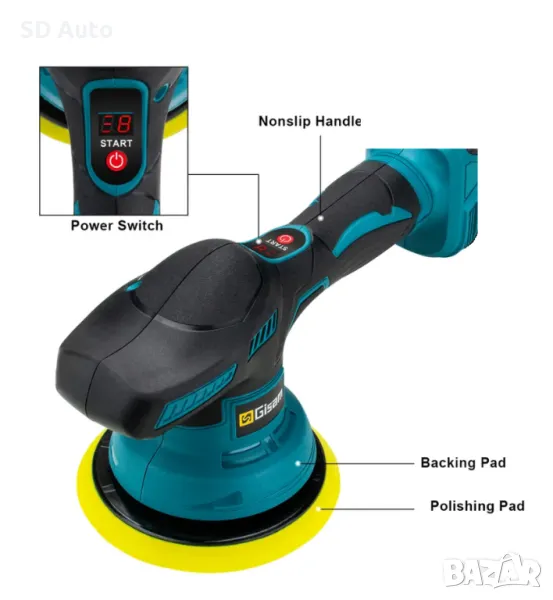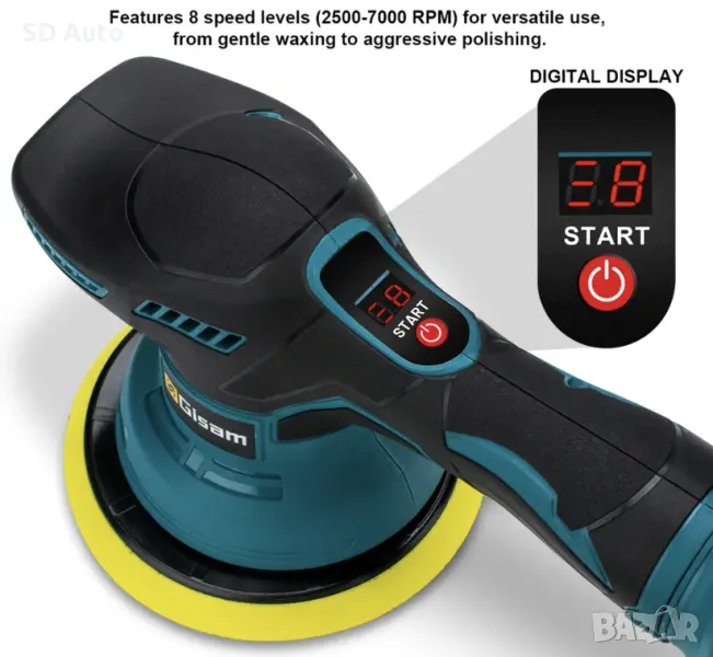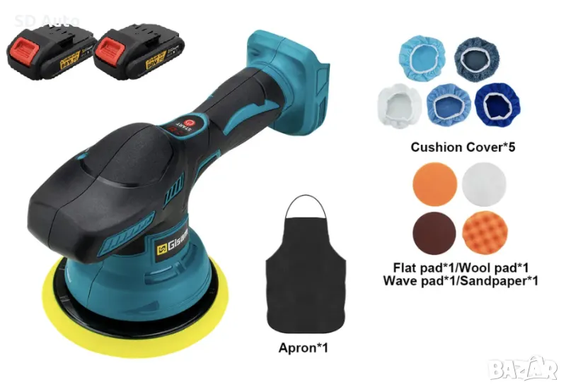 ***Безчеткова Акумулаторна Полирмашина GISAM с 5 mm Ексцентрик с 2 Батерии