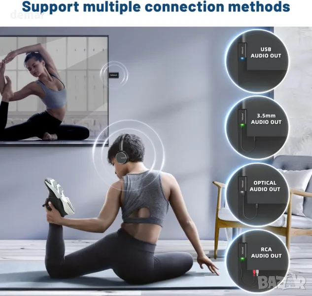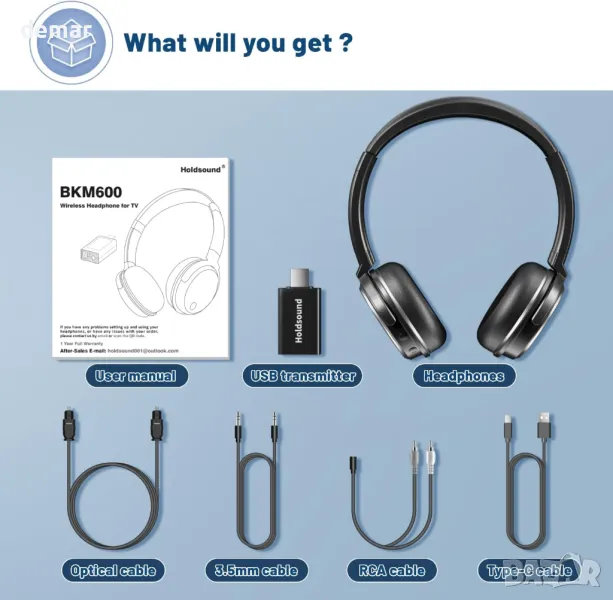 BKM600 Безжични слушалки за телевизор, с Bluetooth USB предавател