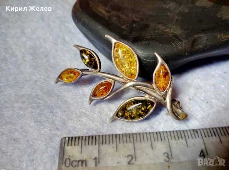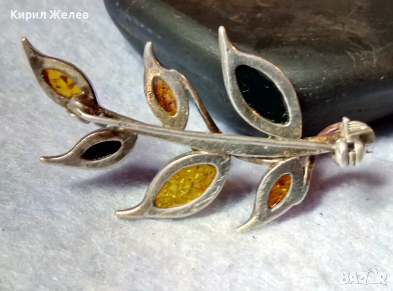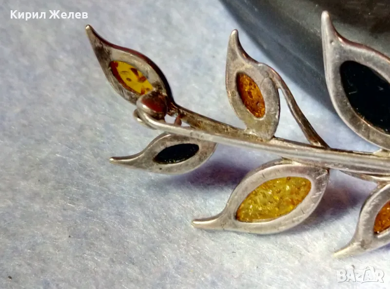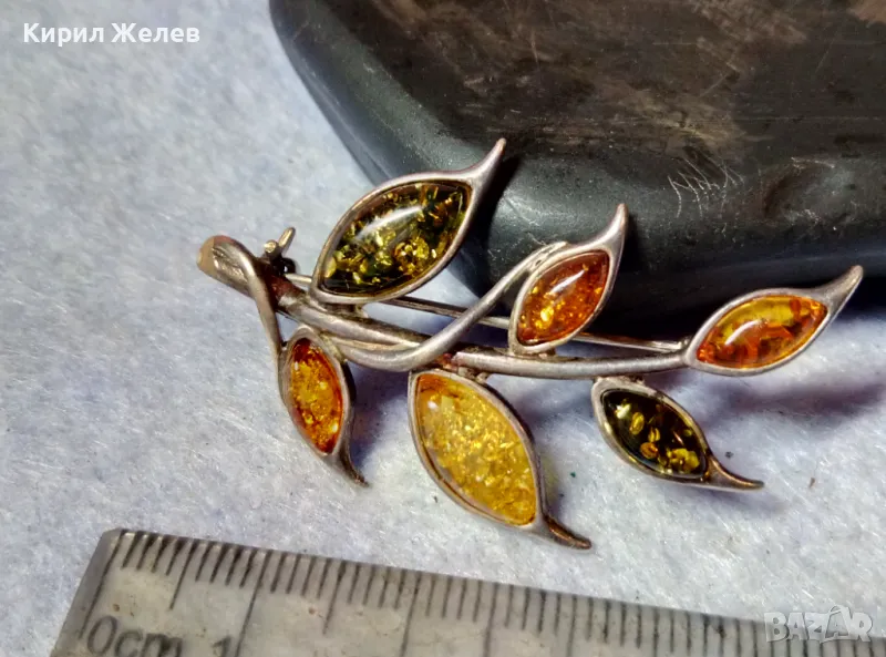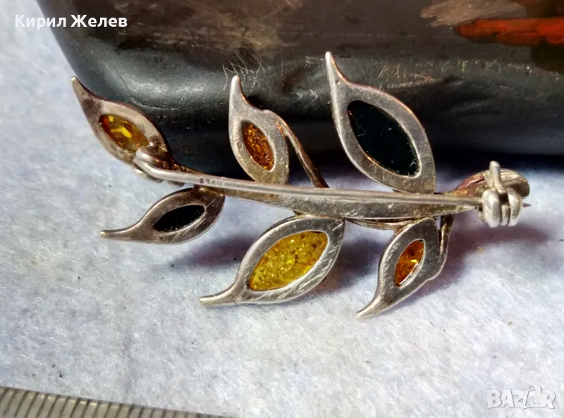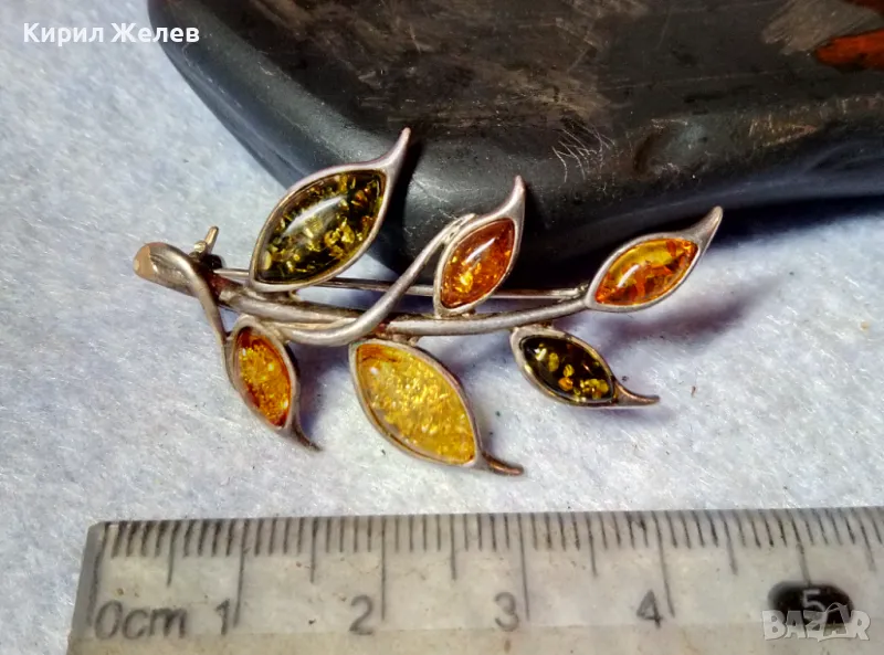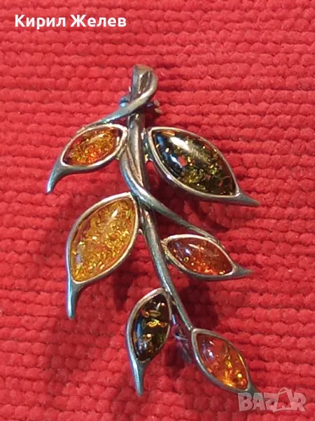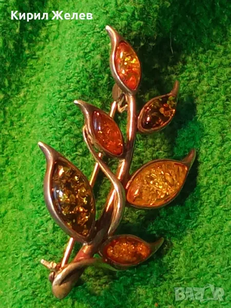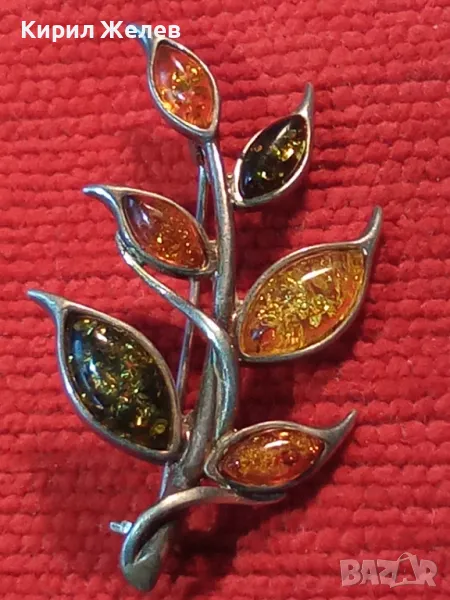 ПРЕКРАСНА ФЛОРАЛНА КЕХЛИБАРЕНА СРЕБЪРНА БРОШКА СРЕБРО 925 с 100% НАТУРАЛЕН БАЛТИЙСКИ КЕХЛИБАР 48245