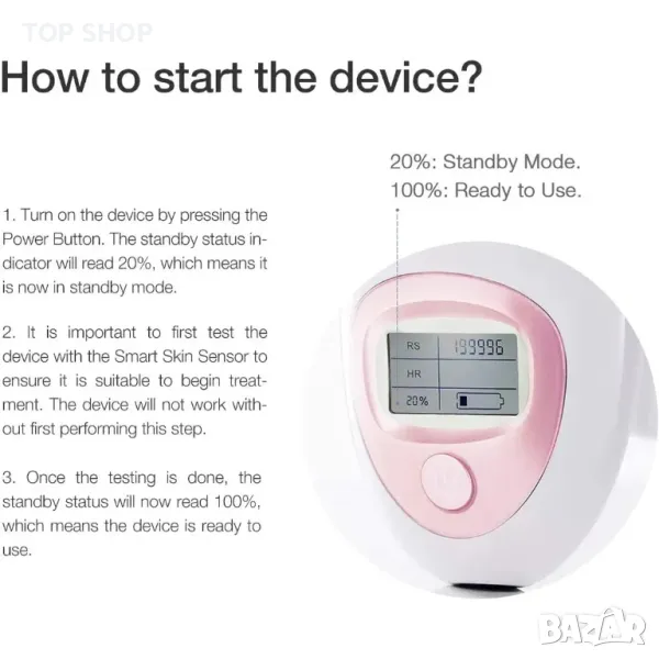 Моля, намерете ВИДЕО ЗА ОПЕРАЦИЯТА НА АНГЛИЙСКИ, като потърсите „Cosbeauty IPL епилация“ в YouTube. По този начин ще разберете стъпка по стъпка Как да използвате или Кой може да използва това устройство.