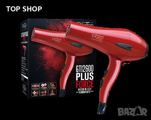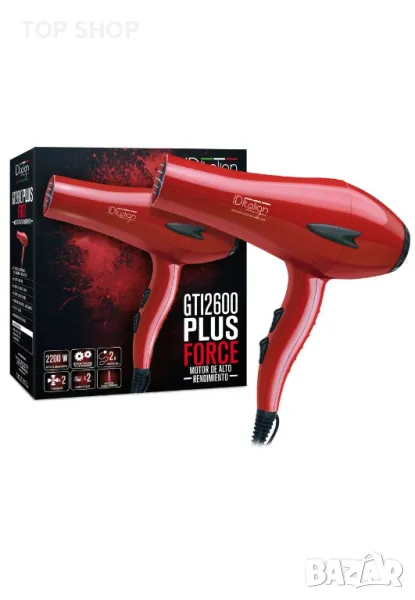 Професионален сешоар IDitalian GTI 2600, 2200 W двигател с игла, йонизация, 2 скорости и 3 настройки за температура и студен въздух, концентратор
