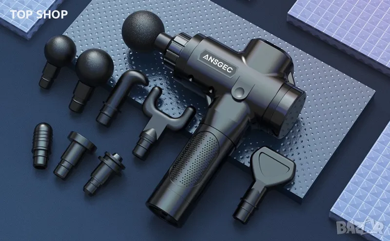 масажор Пистолет за масаж на мускули ANSGEC 30 скорости Мощен перкусионен масажор, пистолет за фасция Muscle Gun с 8 глави LCD дисплей, ръчен масажор за мускулно тяло за възстановяване на болки в тялото