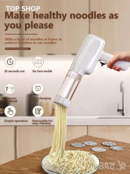 Автоматично приготвяне на паста: Тази електрическа машина за паста е проектирана с вградена литиева батерия и позволява лесно и удобно приготвяне на юфка.