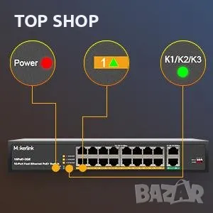 MokerLink 16-портов PoE switch с 2 Gigabit Uplink Ethernet прт