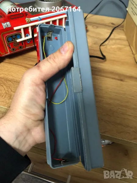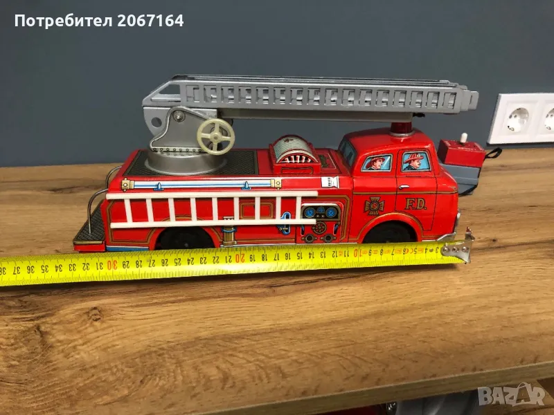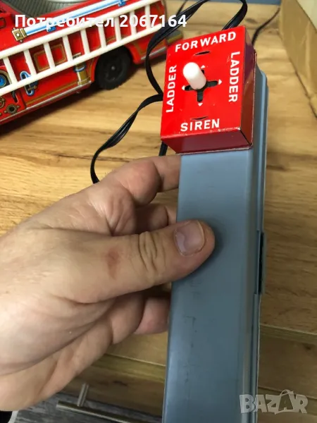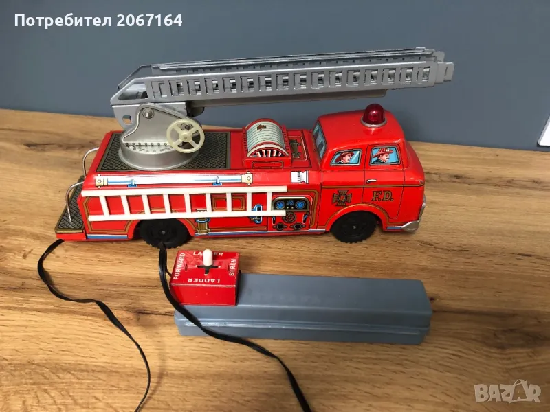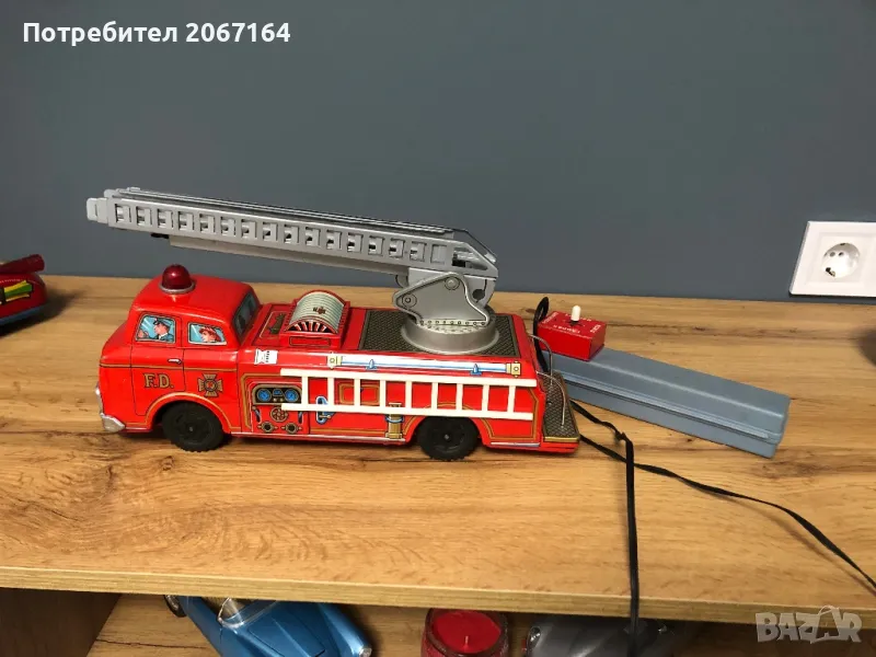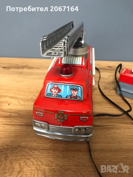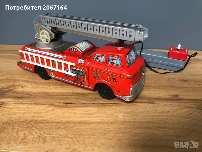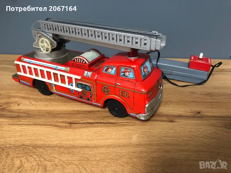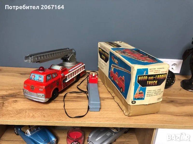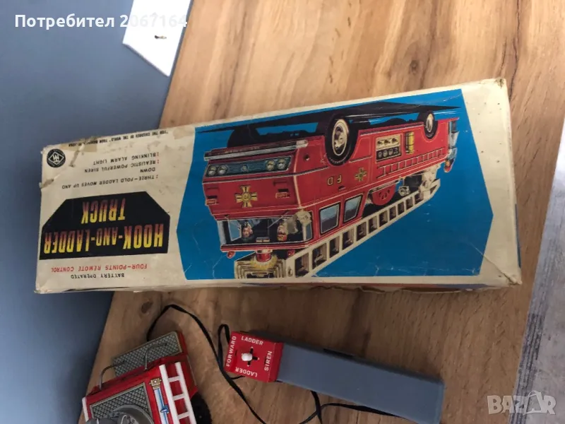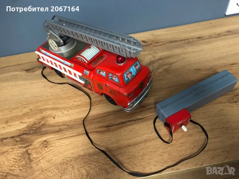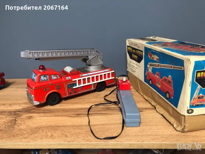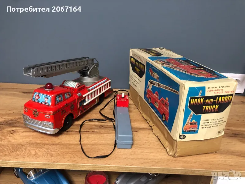 Японска ламаринена играчка. 70 те години с дистанционно , работи . При желание пращам клип .Оригиналната кутия. Лично предаване в Пловдив