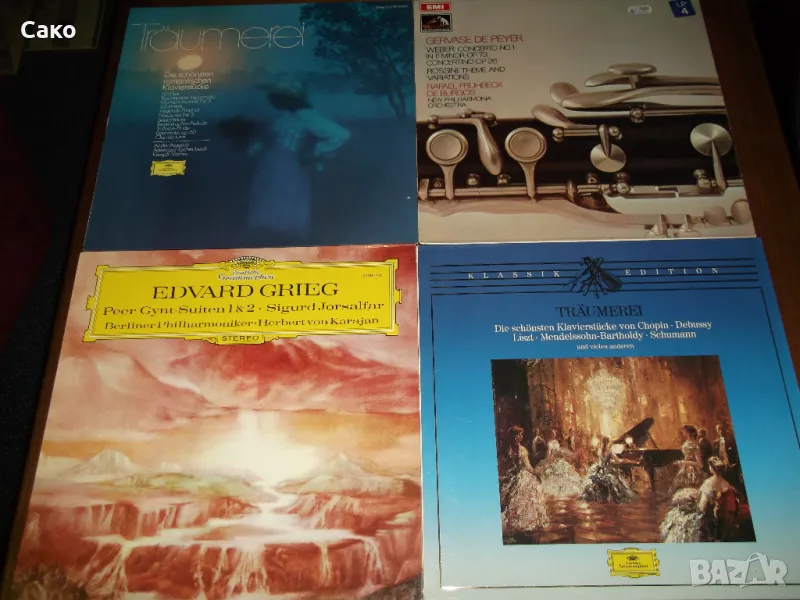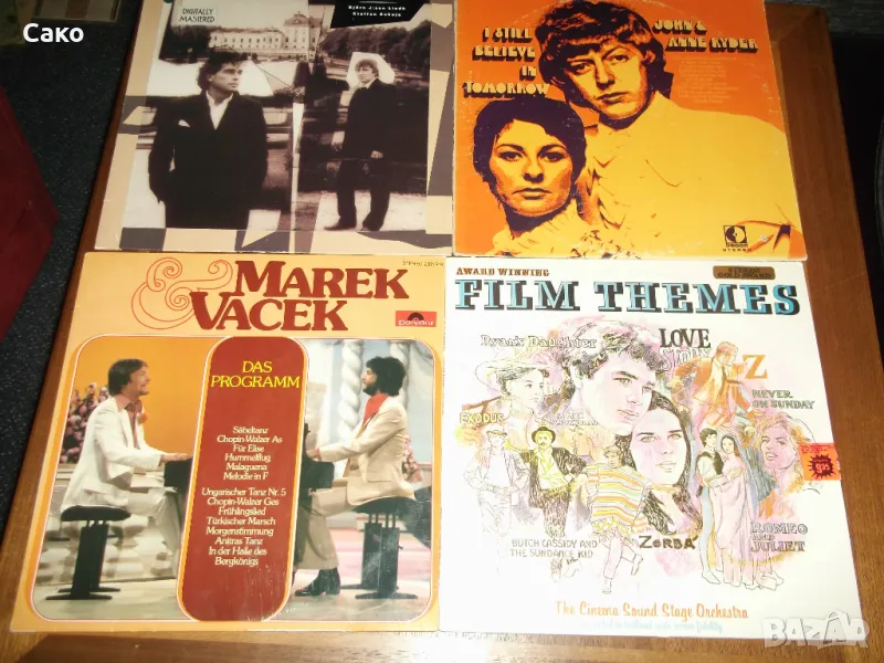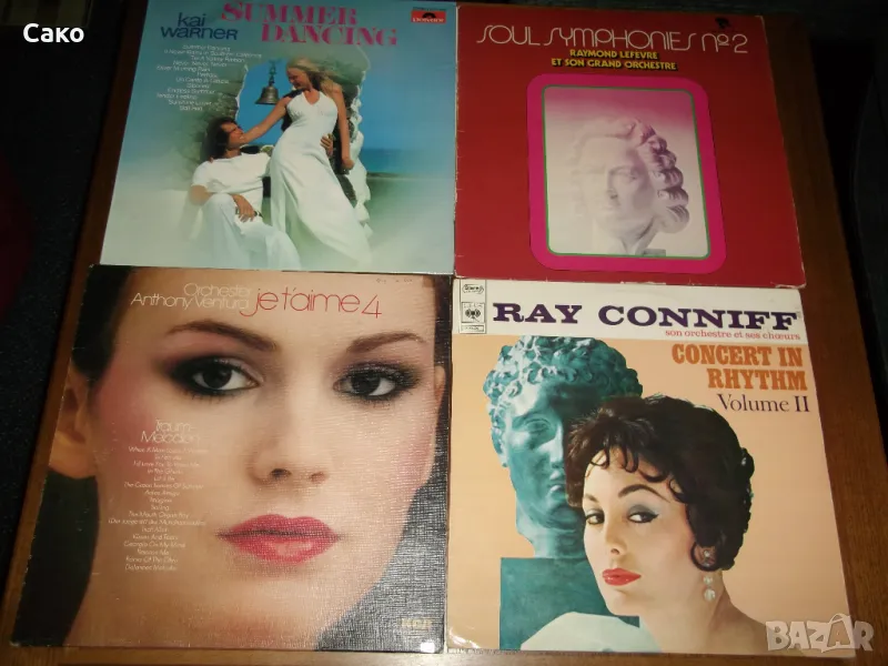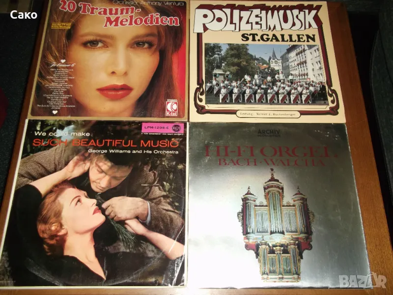 Продавам част от колекцията си от плочи Западни издания, събирана през годините. Те са машинно измити и като цяло мисля, че са в добро и много добро състояние, без да твърдя, че са перфектни. Правилно са съхранявани, макар и отдавна да не са слушани. Харесвам звученето на популярни оркестрови изпълнения и стария носталгичен поп, затова в голямата си част заглавията са такива, но сред тях може да откриете и нещо интересно, ако не споделяме една музикална вълна...?