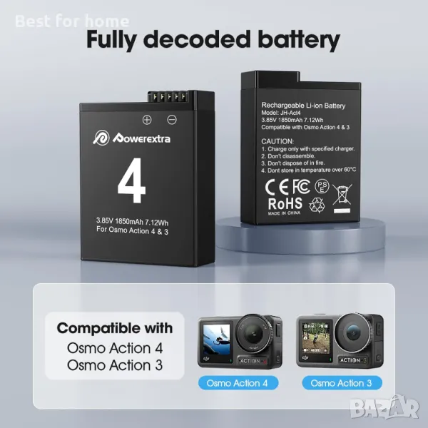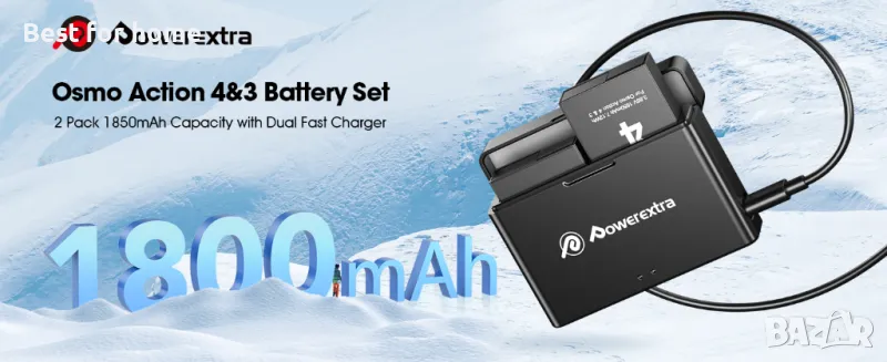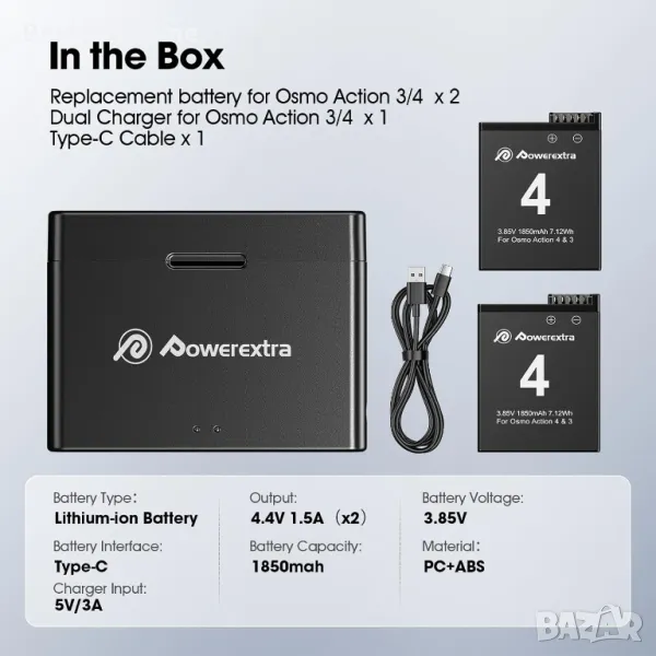 Комплект батерии и зарядно DJI Osmo Action 4 и 3 от Powerextra