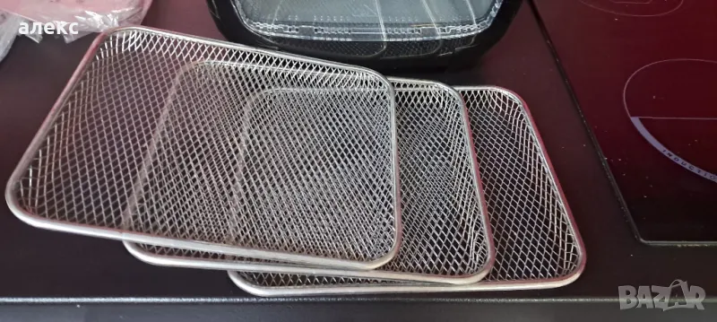 Включени аксесоари Грил, 3 решетки, въртяща се кошница, дръжка