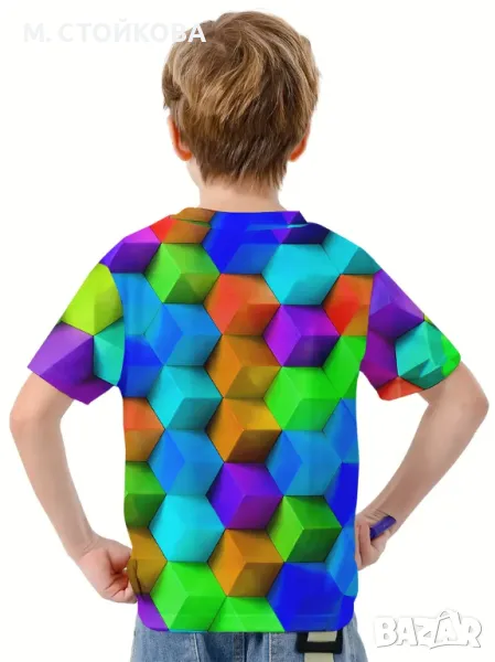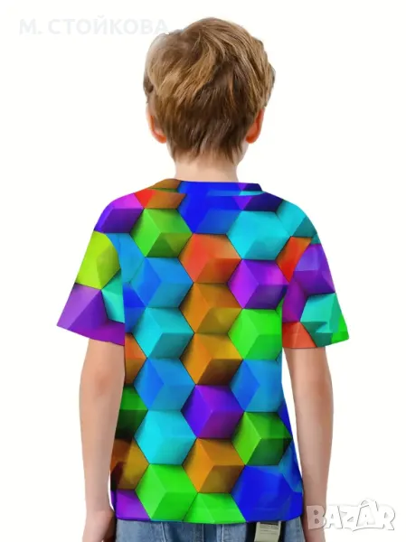 Момчешка страхотна, 3D, геометрична, кубична, графична, тениска. Дишаща и еластична смес от полиестер.