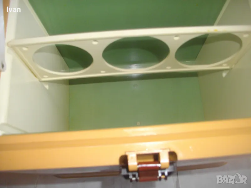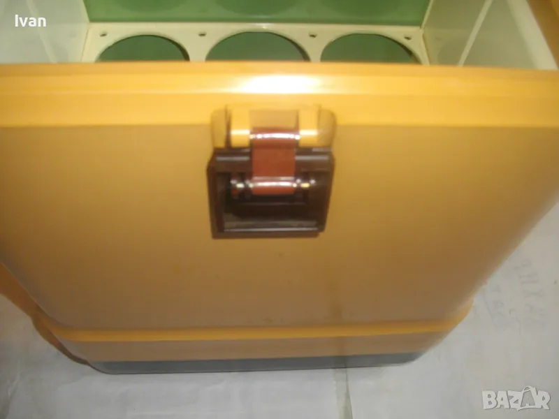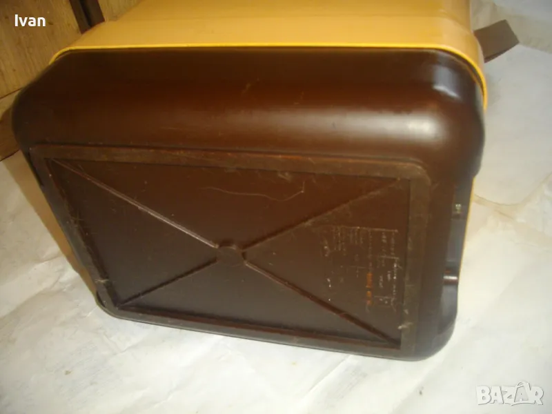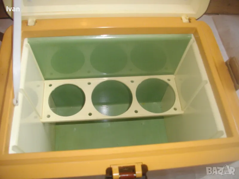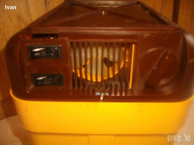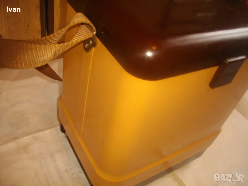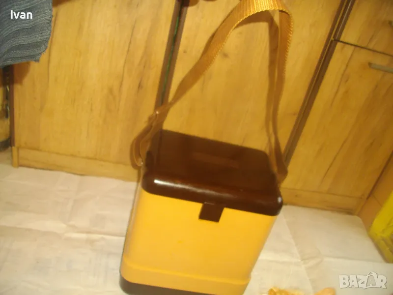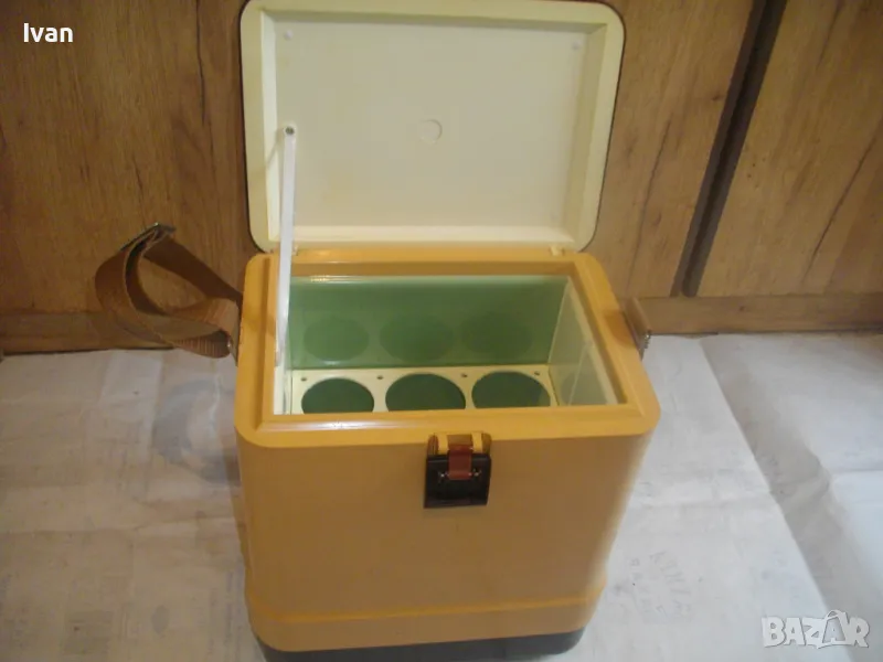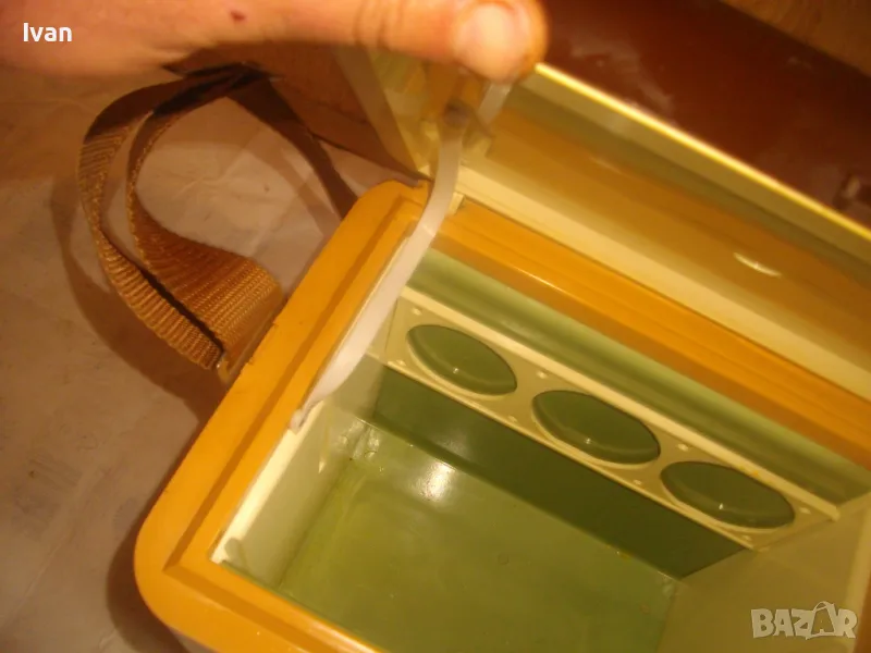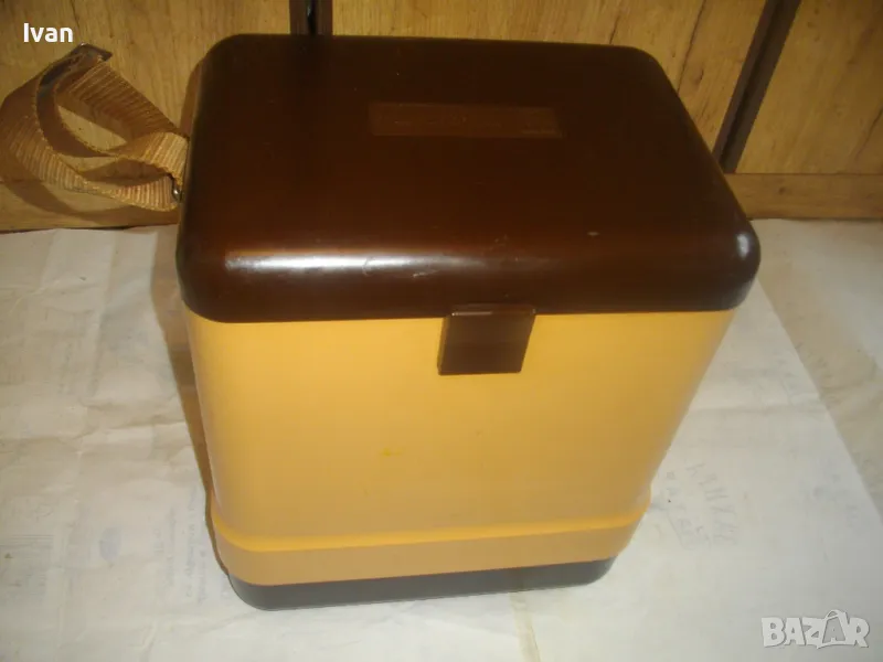 ОПИСАНИЕ на жълто кафяв авто 12 волта хладилник хладилна чанта. Цена 159 лв. Уреда е предназначен само за захранване от 12 волта, с вграден в корпуса дълъг захранващ кабел 5 м с извод за вкючване към запалката на автомобил. Запазен външен вид и отлично работно състояние. Хладилнака и тип хладилна чанта - отворя се горен цял карак и има презраменен колан за носене. Руско/Украинско производство от 1990 г. Материал на хладилника - старото качество, от стария материал пластмаса. Марка/модел/маркировки на уреда - Goldstar 100 - производител Camping Gaz International - Made in URSS - SIBIR S.A. - 12 V - Modele Goldsat 100 - 1990г.
