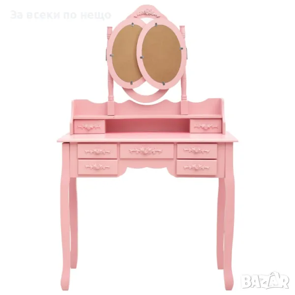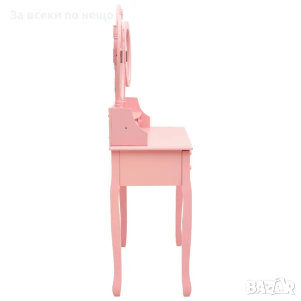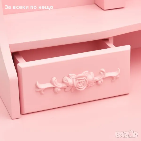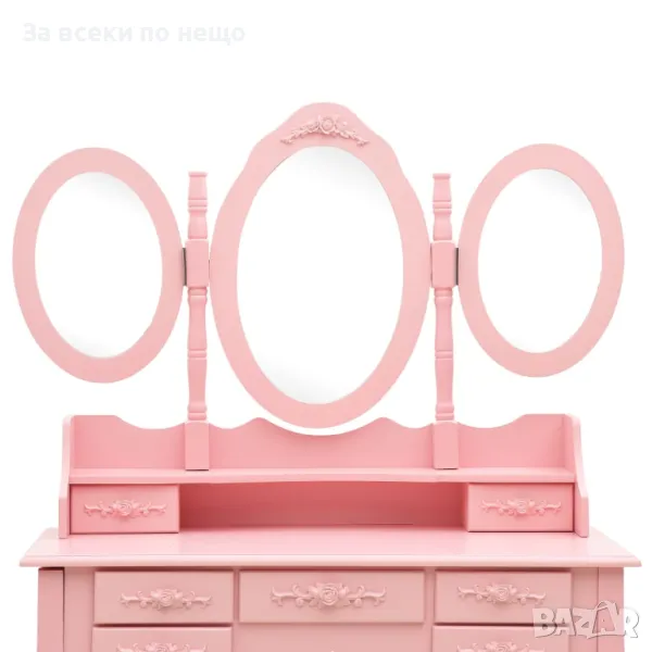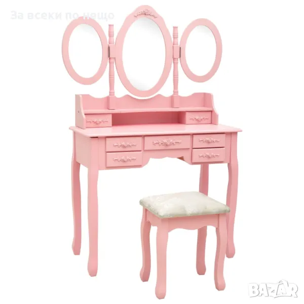 Тоалетка с табуретка и тройно сгъваемо огледало, розова