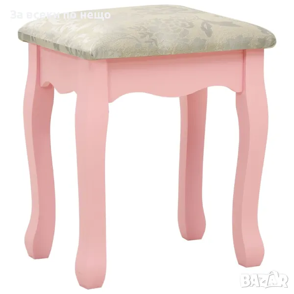 Тоалетка с табуретка и тройно сгъваемо огледало, розова Материал: Дърво от пауловния, МДФ, стъкло, дунапрен