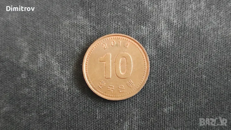 - 10 южнокорейски вона (2014) - алуминиева монета с медно покритие, с красива и равномерна медна патина;