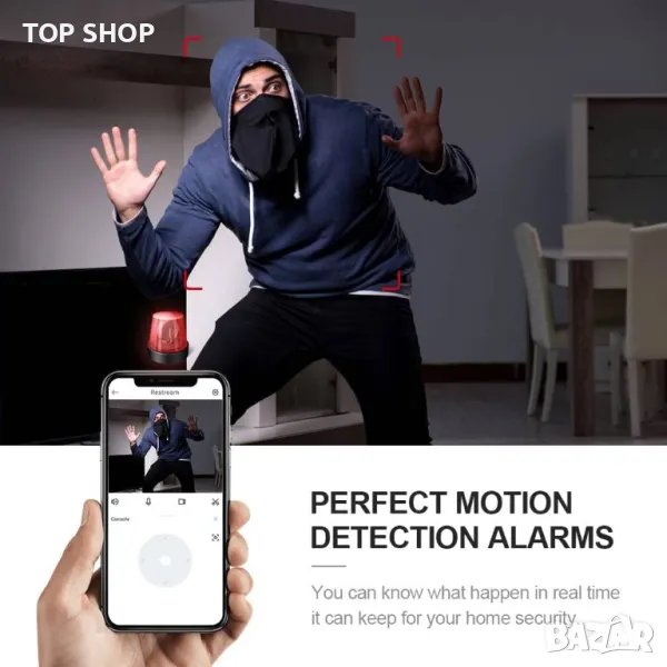 3. Аларма за откриване на движение, бърза и точна, когато тази камера открие, че някой се движи, тя ще запише видео за аларма за движение и ще ви изпрати известие за аларма възможно най-скоро, бъдете в крак с необичайни ситуации. Можете да влезете в приложението, за да видите и чуете какво се случва в реално време, без да се притеснявате, че ще пропуснете нещо важно. Тази камера е перфектна като вътрешна охранителна камера, за да държите под око места като вашия дом или офис.