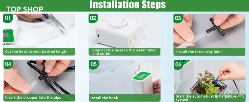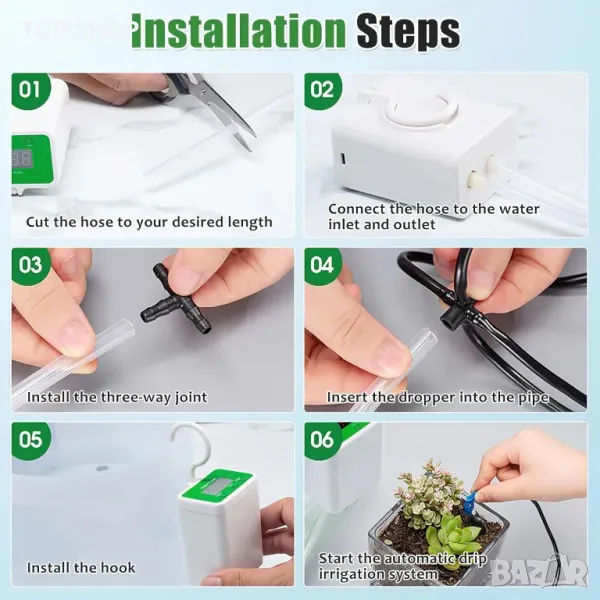 【Лесен за инсталиране】: Инсталирането на системата за автоматично напояване на растенията отнема само няколко минути. Включеното ръководство с инструкции ясно обяснява стъпките за инсталиране и всички необходими компоненти, така че всеки да може да го използва с увереност. Вие сте свободни да регулирате броя и позицията на стрелките за капене, за да отговарят на вашите нужди.