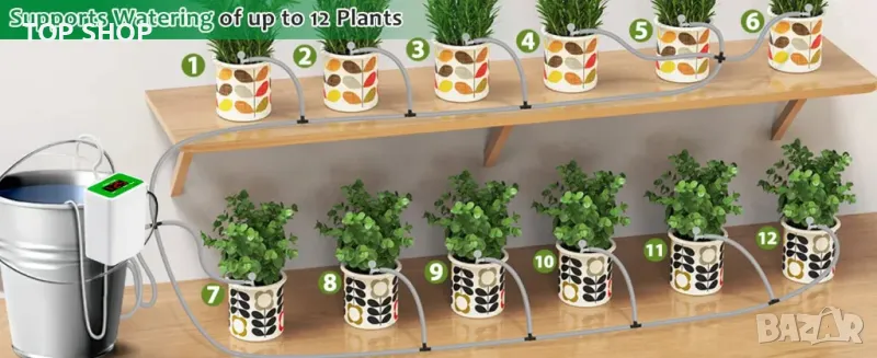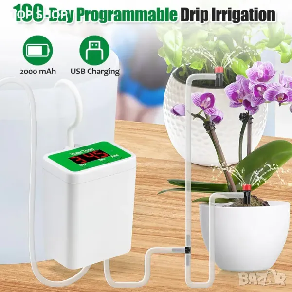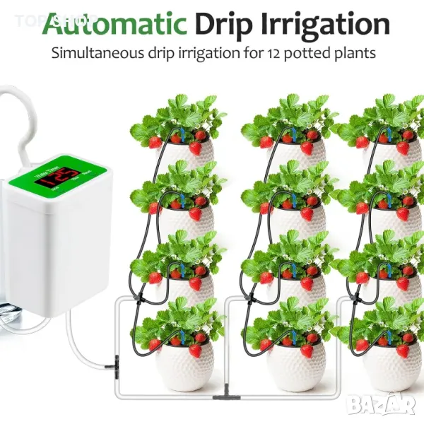 Система за самонапояване за 12 саксийни растения, система за напояване на растения с 90-дневен програмируем таймер, комплект за автоматично