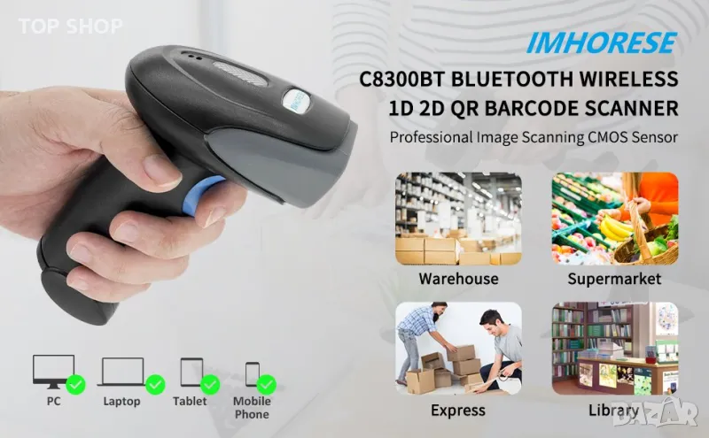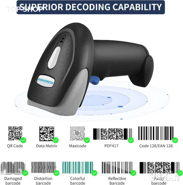 Безжичен баркод скенер 2D IMHORESE 8300BT
