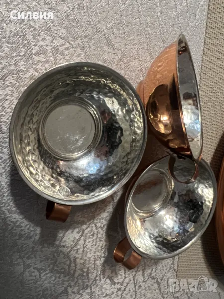 Цената за целият комплект е 70 лв. Всичко е от кована мед , подходящ за ползване, колекция, декорация на битова стая, механа, заведение.