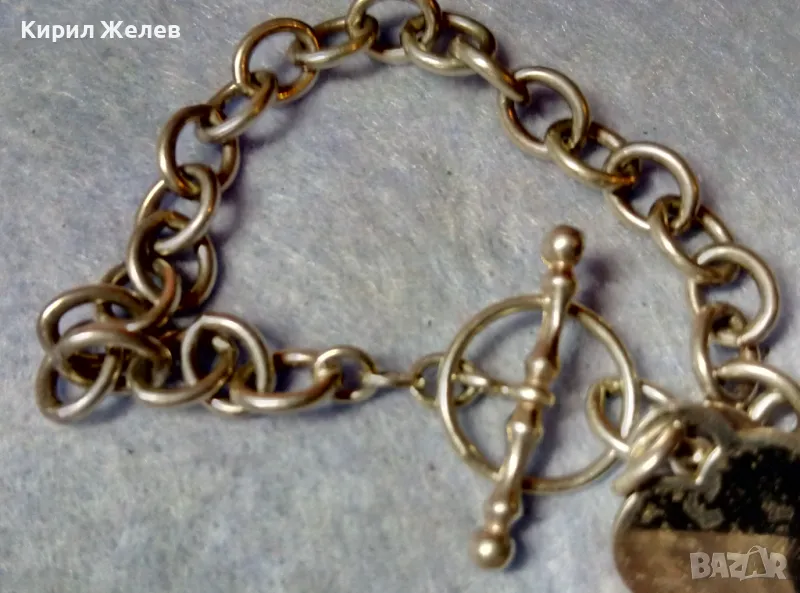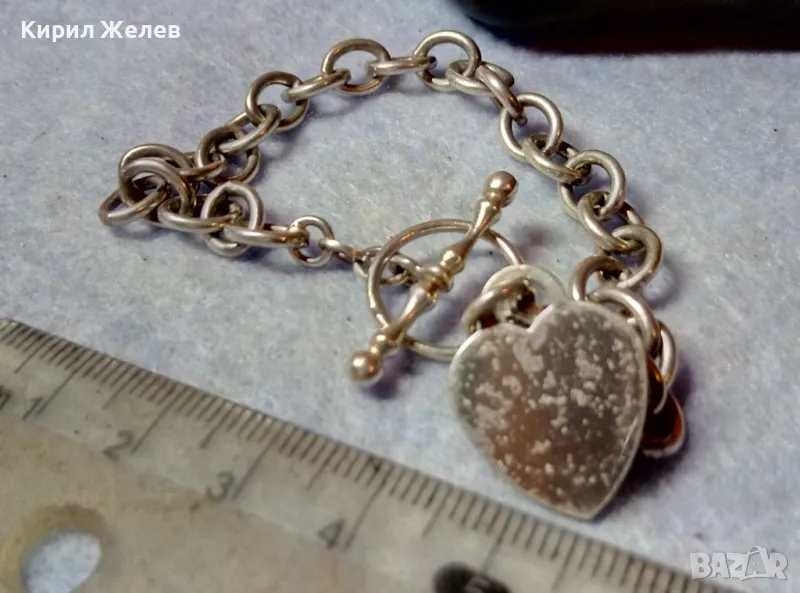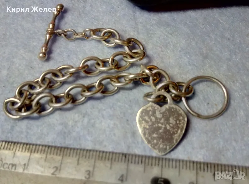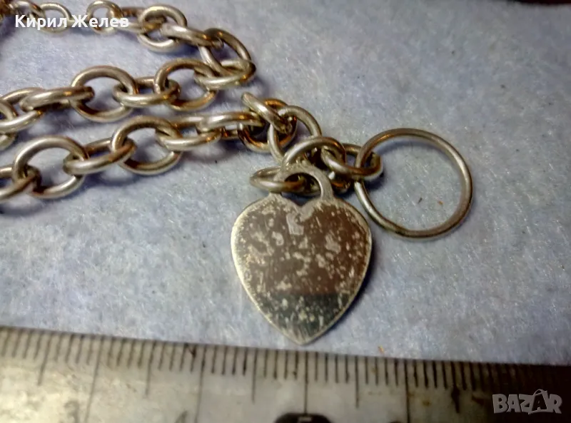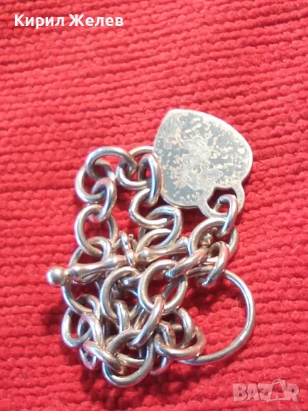 РОМАНТИЧНА ВИНТИДЖ АРТ СТИЛ СРЕБЪРНА ГРИВНА със СЪРЧИЦЕ СРЕБРО 925 с БЯЛА ПОЗЛАТА 47977