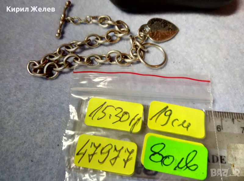 Пускам СЕРИЯ от майсторска ръчна изработка старинни и нови СРЕБЪРНИ БИЖУТА - брошки, медальони, камеи, пафти, гривни, ланци, колиета, някои са инкрустирани със скъпоценни или полускъпоценни камъни. Всичките са ТЕСТВАНИ ПРОФЕСИОНАЛНО върху лидийски камък с пробер - киселина за сребро, като особено по-старите, ръчно изработени и без маркировка които са, е заснето и резултата на камъка - яркочервеният цвят при натъркване и капване на киселината показва, че са от масивно СРЕБРО ВИСОКА ПРОБА. Има и накити от САЧАН /нископробна сребърна сплав, с която са работели старите майстори - куюмджии от периода на ВЪЗРАЖДАНЕТО и края на 19-ти век/, мед, бронз и благородна стомана с позлата или посребряване. Снимките ги ОНАГЛЕДЯВАТ! Имам НАД 27000 обяви в профила си - За ВСЕКИ по НЕЩО...! Изпращам по Еконт или Спиди с опция Преглед/Тест и отстъпка-транспорт.