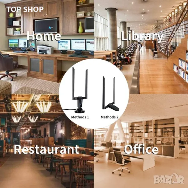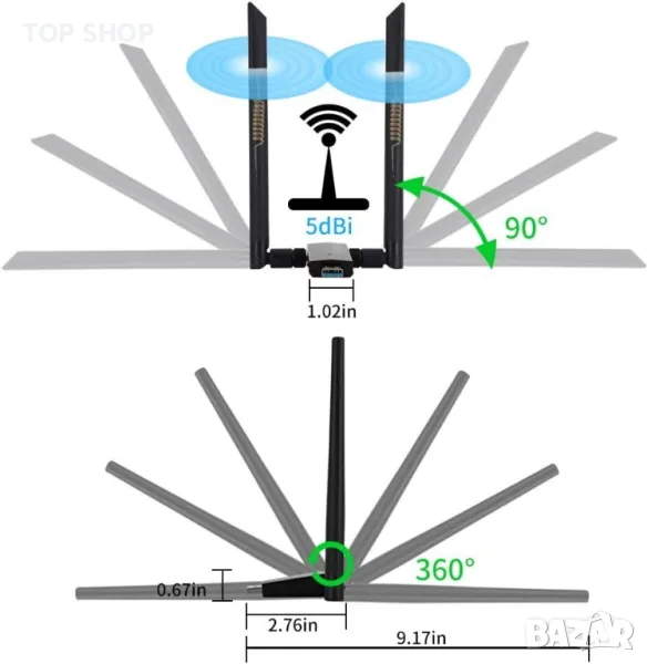 Предаване на дълги разстояния: Оборудван с 2 бр WiFi антени с усилване от 5 dBi, двупосочна комуникация на данни, по-висока ефективност на предаване и по-дълъг обхват, за да се осигури разширен WiFi и отлична стабилност във вашия настолен компютър, лаптоп и компютър.
