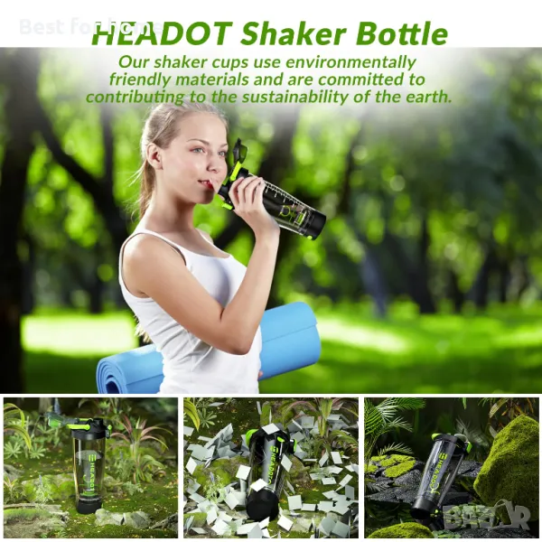 Електрическа бутилка за протеинов шейкър HeaDot,Блендер бутилки за протеинови смеси,600м литра зареждаема чаша за шейкър тип C,Произведена от тритан,Бесфенол А без шейкъри за протеинови шейкове (зелени)