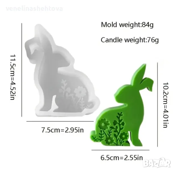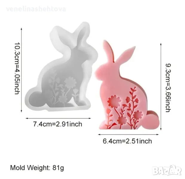 Дълбок заек зайче Великден Силиконов молд форма за свещи гипс сапун смола → Обява 48485952