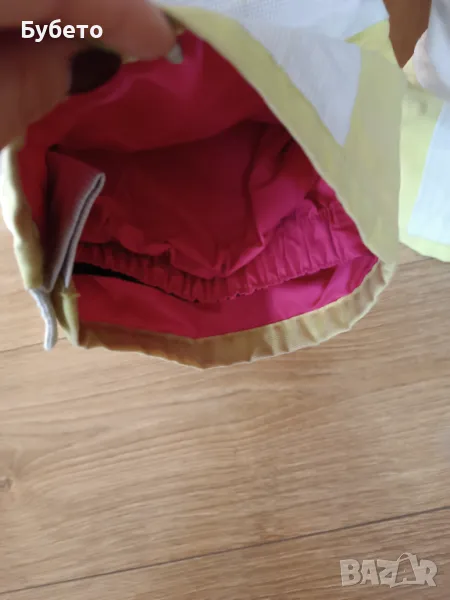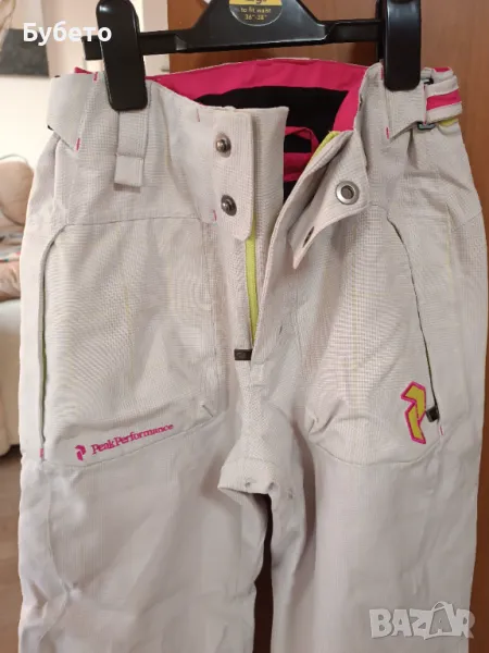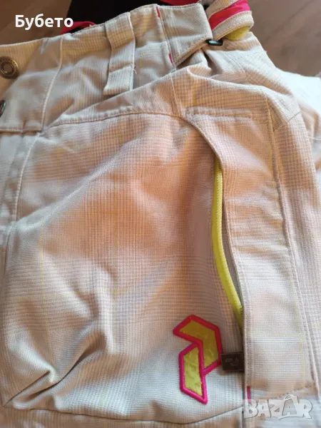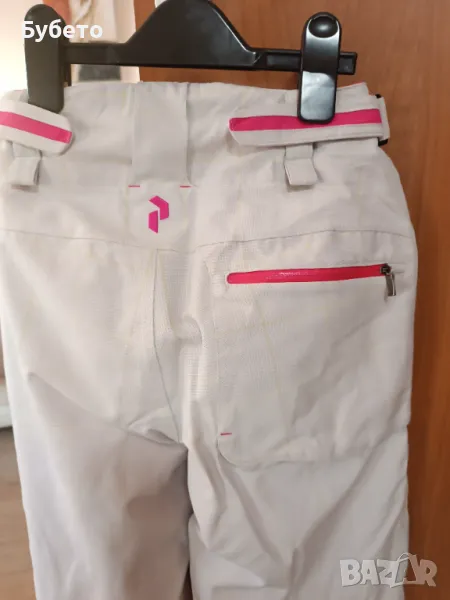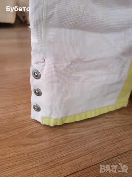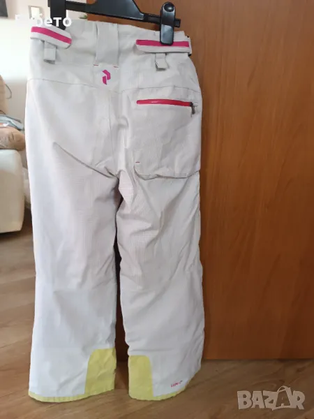 Панталон за ски за ръст 150 см. С регулиране на талията и ластици на крачолите. Малко е използван, но между краката има малко петно, което не се вижда като се облече. Вижда се на последната снимка.