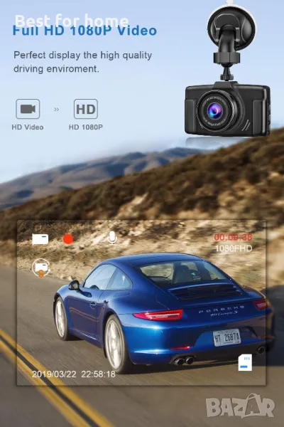 Със 170° широкоъгълна предна камера за управление снима пътя едновременно в full HD 1920x1080P 30fps, перфектна камера за управление за семейни пътувания.