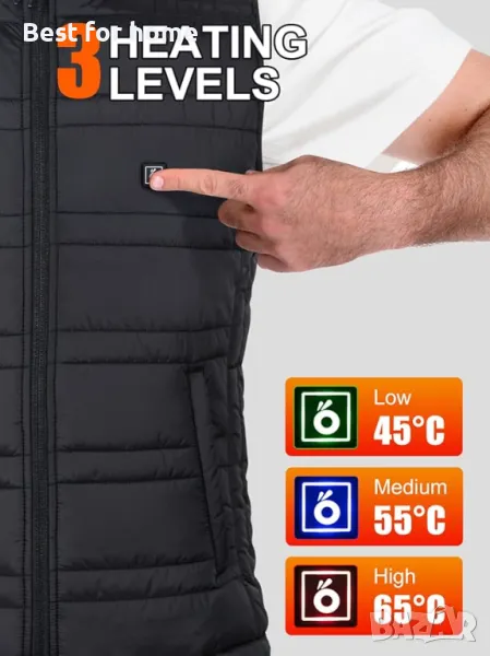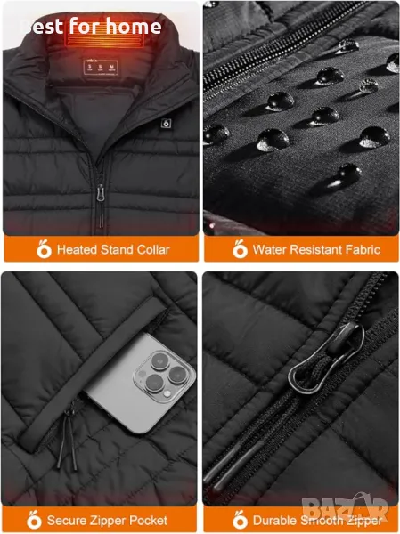 ПАЗЕТЕ ТОПЛО И УДОБНО: Електрическата жилетка за мъже е изработена от 100% полиестер, мека и дишаща, лека и удобна за носене, не е обемиста. Вътрешната изолация и устойчивата на вода/вятър външна материя осигуряват допълнителна топлина и предотвратяват ниските температури. Със стилен външен вид и супер затопляща производителност, нашите отопляеми жилетки за мъже са перфектни като подарък за Деня на благодарността и Коледа, нека вашите близки, родители или приятели са пълни с топлина и комфорт през тази студена зима.
