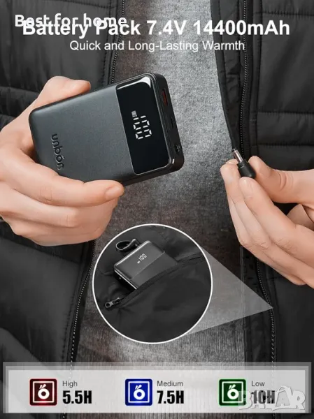 БЪРЗА И ДЪЛГОТРАЙНА ТОПЛИНА: Тази мъжка жилетка с отопление с включена батерия 7,4 V 14400 mAh ви позволява да останете топли с часове. Бързо загряване за 3 секунди. До 10 работни часа на ниско ниво с едно зареждане (USB C зареждане лесно). Лека и малка батерия за предлагане на оптимизирано прилягане, без да се чувствате обемисти във вътрешния джоб с цип. Както TYPE-C, така и USB-A портове за зареждане на смартфони или други устройства с технологиите за бързо зареждане PD3.0 & QC3.0.